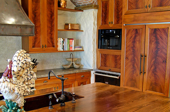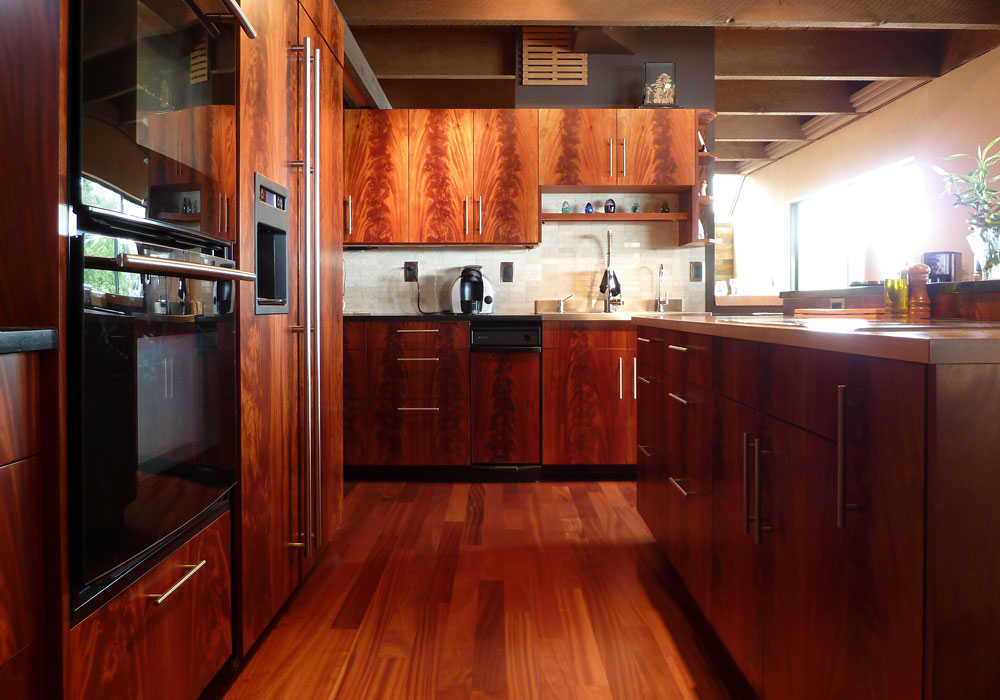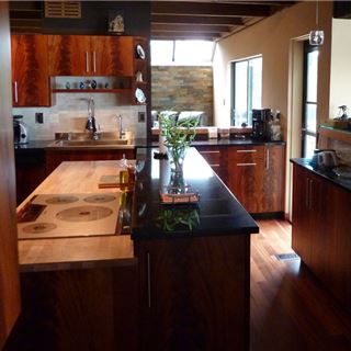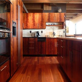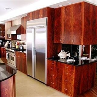 非洲桃花芯的心材颜色范围很广,从浅粉色到深红褐色,有时带深红褐色的条纹,颜色随树龄的增加而加深。纹理有直有交错,中到粗糙的材质,带好的天然光泽。