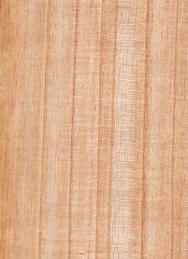 芯材为浅红褐色,略具姜黄色条纹,边材浅黄褐色,芯边材区别明显。纹理或斜或直,结构较细,带天然光泽。