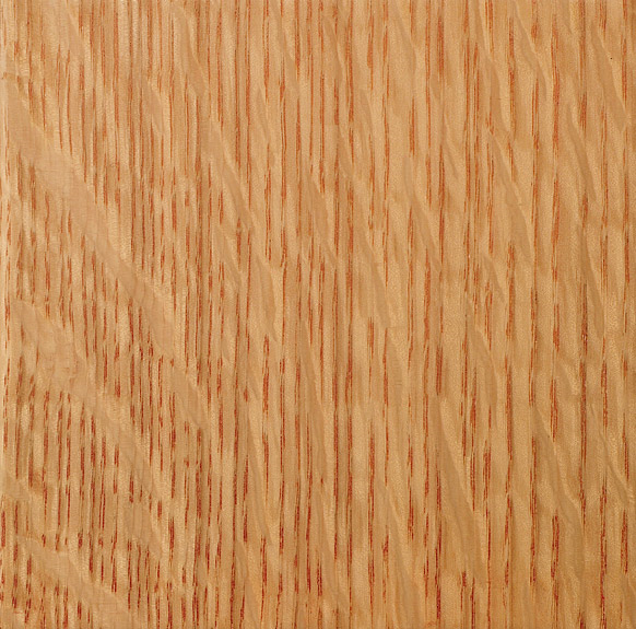 红橡心材是从浅到中的棕色,接近白到浅棕色的边材和心材不是那么容易区分。纹理直,粗糙不平整,树上的导孔很大。